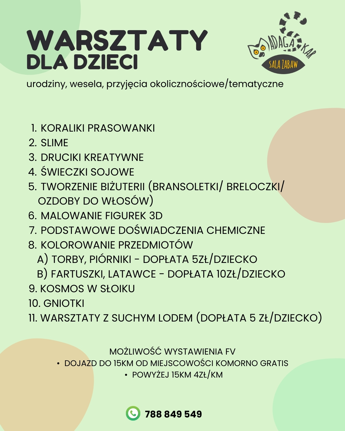 Nasze doświadczone animatorki zapewnią niezapomniane atrakcje, dostosowane do wieku i potrzeb każdej grupy. Bez względu na miejsce – dom, restauracja czy plener – gwarantujemy świetną zabawę i radosną atmosferę!